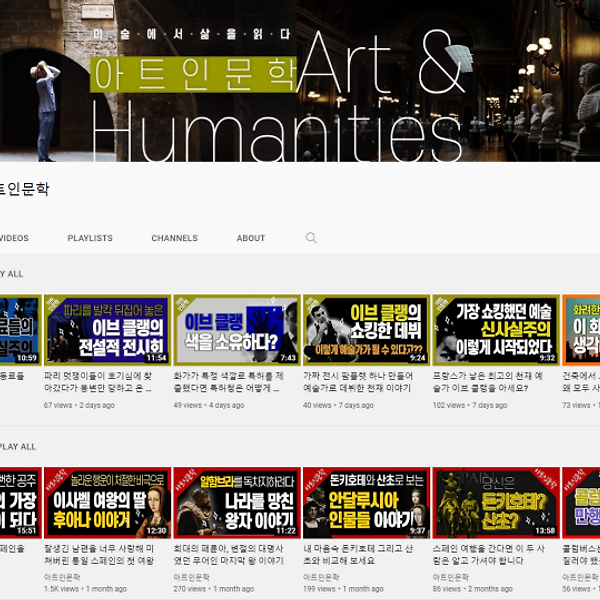 아트인문학 유튜브 이제 방송으로 아트인문학을 만날 수 있습니다 현장에서만 만날 수 있었던 아트인문학을 이제 집에서, 손 안에서 편하게 만나보세요 더보기
